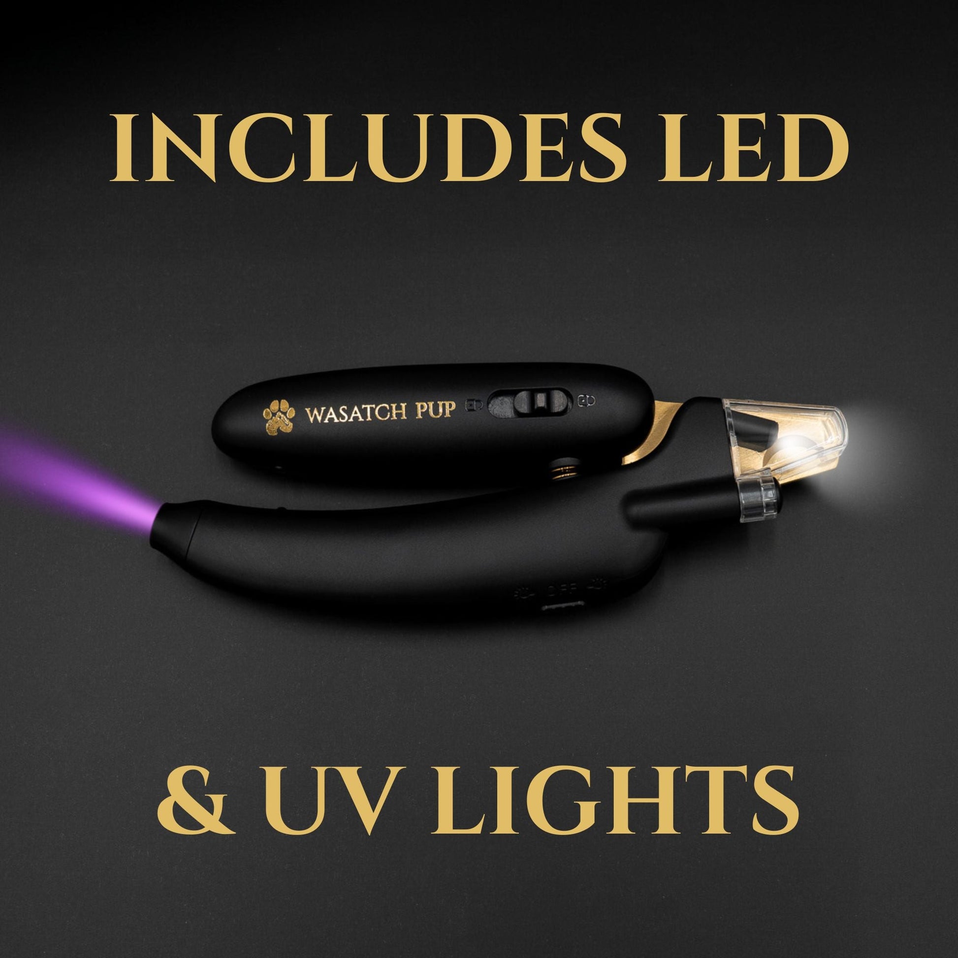 The Wasatch Pup 3-in-1 Nail Clippers are perfect for at-home grooming and ideal for beginners. Designed with an LED light, these clippers provide a clear view of each nail, ensuring a precise, safe trim every time. The UV light feature is perfect for spotting dirt and germs on paws and nails, so you can keep your pet’s paws as clean as they are trimmed. With a comfortable grip, built-in file, and these clippers make nail maintenance easy, safe, and effective—perfect for pet owners looking for a stress-free grooming experience at home.