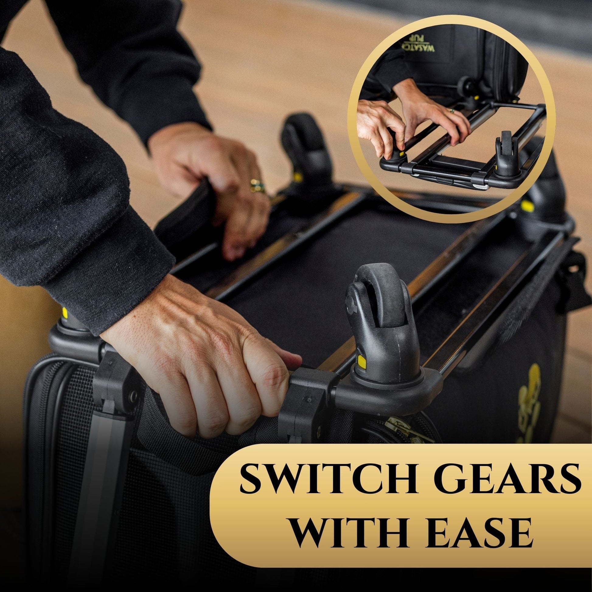 - Sleek Black & Gold Design – Minimalist black fabric paired with elevated gold hardware—made to match your lifestyle and your pup’s.