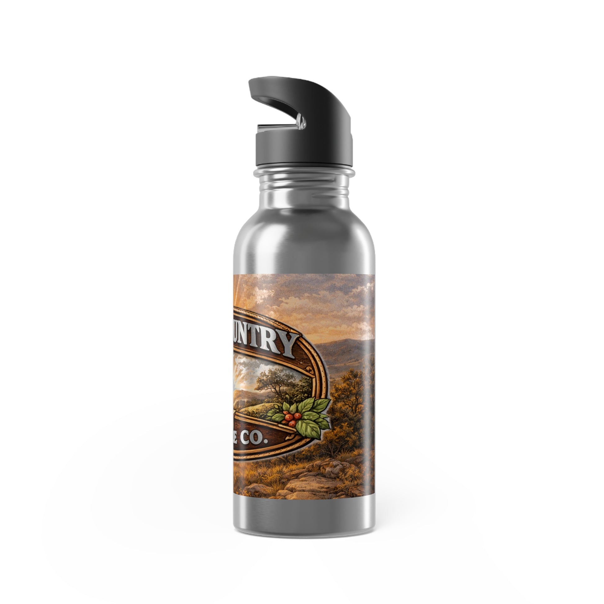 This 20oz stainless steel drink bottle brings Hill Country Coffee along for every road, trail, and morning commute. Its coated stainless body keeps beverages hot or cold while a flip-top spout and inner straw make sipping on the go effortless. The durable loop-handle lid tucks neatly into a hand or clip, and the leak-proof pivot spout gives confidence when tossing the bottle into a bag. Bright, vivid printing and a tough ORCA coating hold the espresso-hued artwork true through daily use. Carry a little coffee-country calm with you—easy to grip, easy to sip, and built to travel.