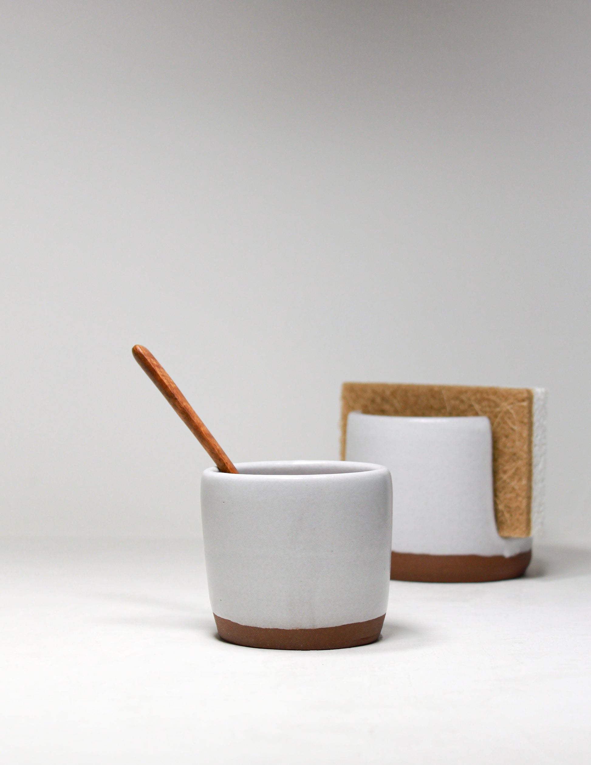 Every delicious dish craves a touch of salt – be it your morning omelet or your cherished baked goods. Our handmade salt cellar simplifies the process of adding that perfect pinch, whether you prefer the classic finger pinch or using a teakwood spoon. Handcrafted on a potter's wheel, this salt cellar is modern, sleek and has a touch of earthiness, thanks to its raw red clay exterior. The interior can boast any one of our different glaze options, adding a touch of refinement. While it effortlessly complements our handmade sponge holders, its versatile design harmonizes with various styles. This handmade salt cellar is the ultimate companion for every meal – from preparation to the dining table. The spoon is not included. ~2.5"x2.0"